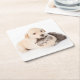 cute little cat sleeps in dog's hands square paper coaster