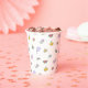 NewParkLane - Cute kids' birthday paper cups, featuring colourful pattern of little creatures like bees, butterflies, flowers and apples and watermelon in different bright colours.