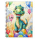 Cute little dinosaur with lots of colourful balloo notebook