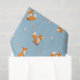 Cute little cartoon foxes with large ears and bushy tails surrounded by flowers and fluttering butterflies.