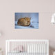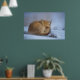 A poster with a darling nature photograph featuring a cute little red fox all curled up in a ball resting on the cold winter snow.