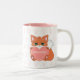 Cute Little Fox Holding a Heart & Paw Pattern Two-Tone Coffee Mug