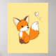 Cute little cartoon fox kit with large ears and bushy tail is watching a fluttering butterfly.