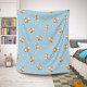 Cute Little Foxes Pattern on Blue Sherpa Blanket