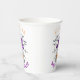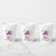 This delightful paper cup for a baby shower showcases an adorable little ghost wearing a purple witch hat, cheerfully displaying the word 'BOO.' The design is beautifully complemented by a backdrop of a spiderweb and playful bats, setting a festive and charming tone for the celebration of a new arrival. The blend of these elements not only introduces a hint of spookiness but also infuses the event with fun and joy, making it a perfect selection for any Halloween-themed baby shower.