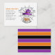 Cute little watercolor ghost Books for baby Halloween baby shower Enclosure Card. This adorable enclosure card for a baby Halloween shower showcases a charming little ghost adorned with a purple witch hat. Behind the ghost, there's a whimsical spiderweb decorated with playful bats, adding a fun and spooky touch. The card prominently displays the phrase "Books for baby," making it clear that guests are encouraged to bring books as gifts. The background is a clean white, which helps the colourful elements stand out beautifully. On the reverse side, there's a delightful pattern of stripes in purple, orange, and black, perfectly capturing the festive spirit of Halloween while maintaining a cute and inviting vibe.