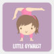 Tumble, flip and have fun! A vector cartoon of a cute little gymnast girl dressed in a pink leotard who is on her hands doing a graceful and beautiful Gymnastics routine pose. This mini gift design is great for little girls who are into gymnastics. Text reads "Little Gymnast" which you can personalise with child's name.