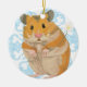 Cute little Hamster holding a flower & snowflake Ceramic Ornament
