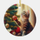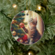 Cute Little Kitten Playing With Christmas Bulb Ceramic Ornament