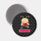This fridge magnet has a cute children's design of a blondehair little girl dressed up like a ladybug. There is a black and white polkadots pattern in the background with a ladybug at the bottom. Graphics by Stockberry Studio at Mygrafico
