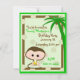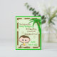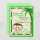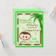 Cute and colourful children birthday party invitation done in a cartoon style, with a whimsical polka dot background of pale green, tan and brown. A cute cartoon monkey eating a banana sits under a palm tree gives this kid's invitation a fun exciting look. Customize all the text fields to your needs, with text style, colour, and size.