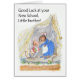 A 'Good Luck at your New School' greeting card for a Little Brother, with a little mouse leaving Mousehole Cottage to set off for his first day at school. This design is from a hand-painted watercolour illustration by Judy Adamson. You can personalize the inside message.