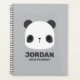 This design features cute little panda bear with personalized name in grey modern sans serif font style on light grey background.