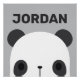 This design features cute little panda bear with personalized name in grey modern sans serif font style on light grey background.