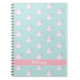 NewParkLane - Cute personalized notebook for girls, featuring colourful pattern of little pink bunnies against a pastel teal / aqua coloured background.