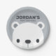 This design features cute little polar bear with personalized name in grey modern sans serif font style on light grey background.