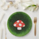 A cute illustration of a spotted red mushroom. Background is a green weathered texture, the colour reminiscent of a lush green forest where you might find these adorable little fungi. The toadstool mushroom is a magical mystical symbol which can help add whimsy and mystery to your home and your life.