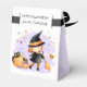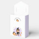 Cute Little Witch Halloween Favour Box with cutest watercolor girl witch, pumpkins and a black cat in purple, orange and black. Purple sides.