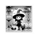 Cute little witch with cats and pumpkins, custom rubber stamp