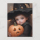 Cute Little Witch with her Halloween Pumpkin Postcard