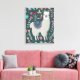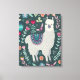 Image by Alena Gridushko | Shutterstock. Image ID: 1236048322 | This hand drawn design features a cute llama and colourful flowers on a teal background.