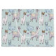 Gift bag with a cute pattern featuring whimsical llamas. One is laying down, one is holding a flower in his mouth, and one is looking at you suspiciously. These animals have lots of charming character. Set on a green polka dot background.