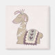 A magnet with a drawing of a cute little llama wearing a crown and a Peruvian blanket. Looking fancy and elegant.