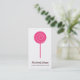 Cute Lollipop Candy Shoppe Business Cards. Simple, modern candy shop business cards feature a "candy pink" lollipop design with your shop name on the front in brown. The back of the card is the same pink, with 4 small white lollipops decorating the top. Customize with your business information.