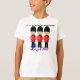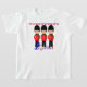 Such a cute tee shirt top in red white and blue, London Themed with three little Buckingham Palace Guards standing in a row; under Union Jack Bunting flags and underlined by London text with the famous London Eye symbol. A very British fun and trendy picture.