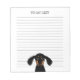 Dachshund Lover's Notes. Funny longhaired black and tan Doxie puppy. Text can be personalized with your name or slogan. Cute lined paper notepad for work, to-do lists, school, and grocery lists. Makes a fun gift for a friend for family member who loves wiener dogs. Available in more paper colours.