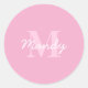 Cute Looking Cursive Name & Monogram | Pink Classic Round Sticker