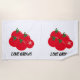 Cute Love Grows Red Tomatoes Beach Towel. This original and simple design was created with circles; lines; shades of black, green, and red; and various font text items (parentheses, periods, and asterisks).