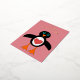 This awesome foil Valentines Day postcard features a cute cartoon of a penguin with big eyes, a small beak and cute little feet. The penguin has a big red love heart in the middle of its belly and wings wide open ready to give someone a big hug.