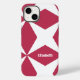 Cute Magenta Red White Retro Pattern Custom Name Case-Mate iPhone Case