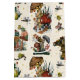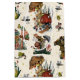 Whimsical gift bag featuring hand-painted illustration of festive mushrooms. A merry mushroom builds a snowman in front of her red mushroom house. A frog and toad enjoy a hot cup of cocoa. And a snail carries a Christmas gift through a mushroom and candy cane forest.
