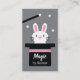 A business card most suited for magicians! It features a minimalist design with the icon of a bunny popping out of a black top hat. Classic magic trick! Personalize easily with your business details. Background colour can be changed in customisation mode.