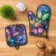 Cute Magical Butterflies on Dark Purple Oven Mitt & Pot Holder Set
