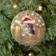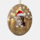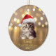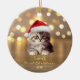 Cute Maine Coon Cat Santa Hat Gold Personalized Ceramic Ornament