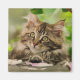A lovely and enchanting brown tabby Maine Coon kitten, resting in a garden and watching with prying eyes. A cutie cat photographed by Katho Menden. A gift for catlovers