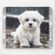 Cute Mouse Pad featuring an adorable watercolor dog Maltese puppy in the rain. Makes a cute personalized stocking stuffer or birthday gift for kids and all the dog lovers. Easily personalize the text or leave it blank. - Kate Eden Art