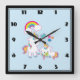 Cute Mama & Baby Unicorn Magical Illustration Square Wall Clock