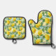 Cute Mediterranean Summer Lemon Fruit Art Pattern Oven Mitt & Pot Holder Set