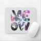 Celebrate feline charm with this delightful mousepad featuring the word "Meow" adorned with cat silhouettes and playful paw prints. Perfect for cat lovers, this artwork captures the essence of our whiskered companions.