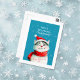 "Have A Very Meowy Christmas!” From a cute winking cat that decorates this cheery Christmas postcard, wishing a very meowy Christmas to all. Snow is beginning to fall as the blue sky starts to fade in the late afternoon light. The darling kitty shows off a bright red Santa hat and scarf. This design originated as a fun retro watercolor picture.