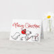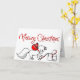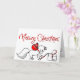 Christmas Greeting Card | Cute 'Meowy Christmas' Kitty - Simple cartoon kitty with a big red bow opening a gift - is a true cat lovers delight. This is part of the Cute Meowy Christmas Kitties Collection by WhimsicalArtwork™