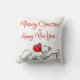 Christmas Throw Pillow | Cute 'Meowy Christmas' Kitties - Simple cartoon kitties in red and white - kitty in Santa hat says ' Meowy Christmas' and Happy Mew Year on the front a kitty playing with a package - a cat lovers delight. This is part of the Cute Meowy Christmas Kitties Collection by WhimsicalArtwork™