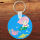 Mermaid with pink hair under the sea with shells and a friendly crab. Personalised keychain.