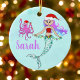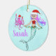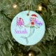 Cute Mermaid Holding Christmas Lights Name Ceramic Ornament