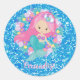 Cute Mermaid Pink Blue Glitter Personalize Classic Round Sticker