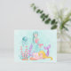 Carte postale avec une jolie illustration aquarelle. 2 sirènes nageant sous la mer parmi la flore. Une joyeuse méduse flotte également sur le bord. Illustration charmante et charmante.